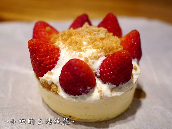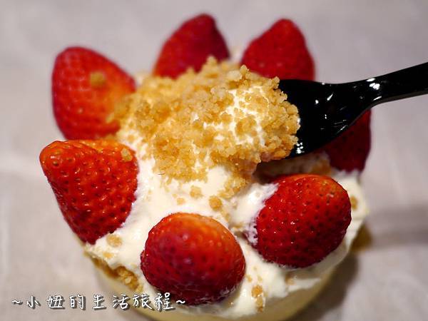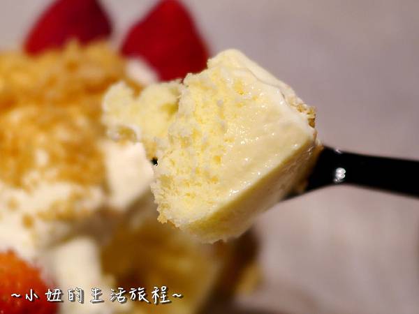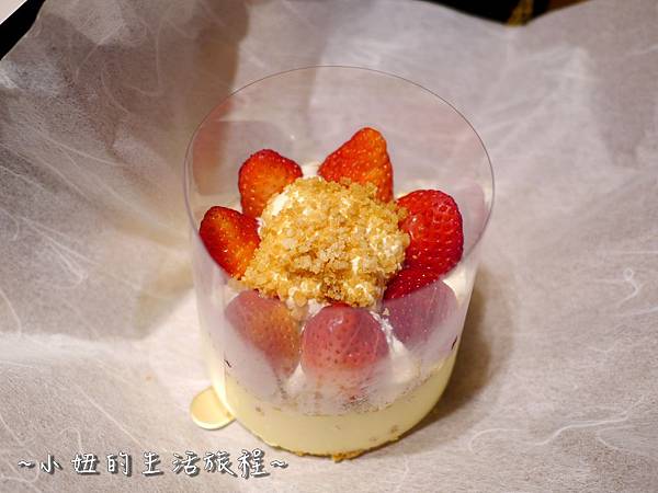牛奶蛋糕口感濕潤,蛋糕體吃起來卻像像幕斯一般綿滑,說入口即化都不會太誇張,中間很像是布丁口感的起司內餡,上方則是香濃又不膩口的鮮奶油和酥脆的沙布蕾,搭配著草莓酸甜滋味超解膩的,整體口感非常有層次、味道微甜而不膩,大推!!