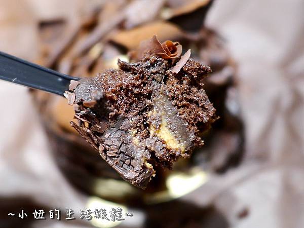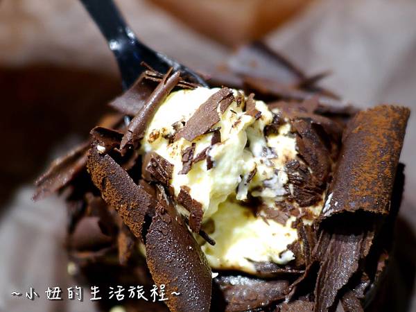 一口挖下放進嘴裡的時候才驚覺,這可可的成分相當的高(巧克力濃度近73%),中間餡料為奶油布蕾餡和焦糖,吃起來綿密不膩口,帶些微苦,可可的香氣充滿整個口腔,相當美味,搭配上一口熱咖啡絕配!!