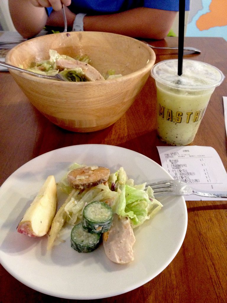 Mastro店內用餐環境很輕鬆,有個大大的電視轉播運動賽事,我們的位子雖在角落但寬敞且獨立,不會被高朋滿座的其他客人影響。 用餐採半自助,餐具水自取。