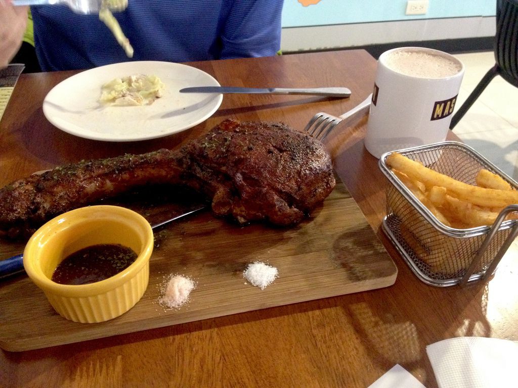 這麼大一隻戰斧豬排已經多到我吃不下想哭叫媽媽了⋯除了豬排本身,大骨上也能片下不少較有嚼勁的肉片,但此刻我也只是抱著沙拉觀望,一切就交給肉食恐龍吧!