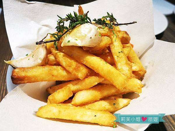 使用整顆大蒜跟少許香料提味的薯條滋味很棒,加上鹽的提味,就算不沾醬也很美味。