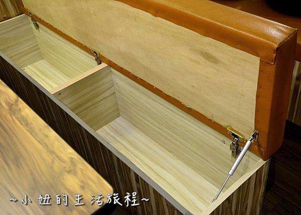 椅墊掀開,有很大的置物空間,可以放外套和包包,這樣就不用擔心外套吸到店內的油煙味,不過老實說『九斤二日式無煙燒烤』的油煙處理的非常好,抽風機是從底部抽走,所以油煙根本沒有機會沾到衣服,妞媽吃完燒肉後,身上和頭髮根本沒什麼燒烤味,這點非常棒!! 讓我們女孩子很害怕的衣服充滿油煙味的問題都不會發生