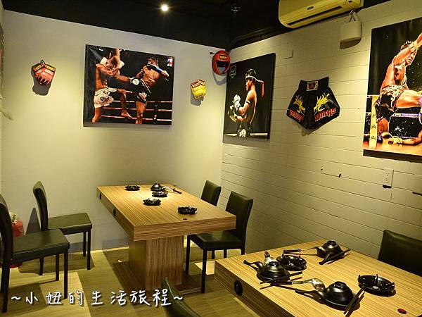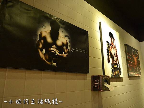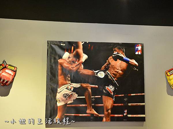 另一頭有一個半開放式的小包廂,大約可容納6人,包廂內的佈置都是泰拳系列的照片,還掛著泰拳的護具,非常吸睛