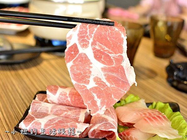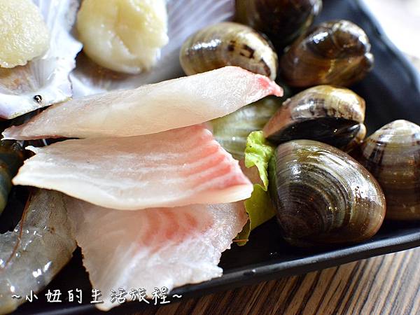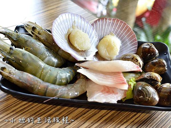 這裡的價位有三種,分別是$220、$270和$330,妞媽點的海陸雙拼是$330,海的部分可以白蝦、魚片、蛤蠣三選一,陸的部分可以豬、牛、雞三選一,妞媽選豬肉和魚片