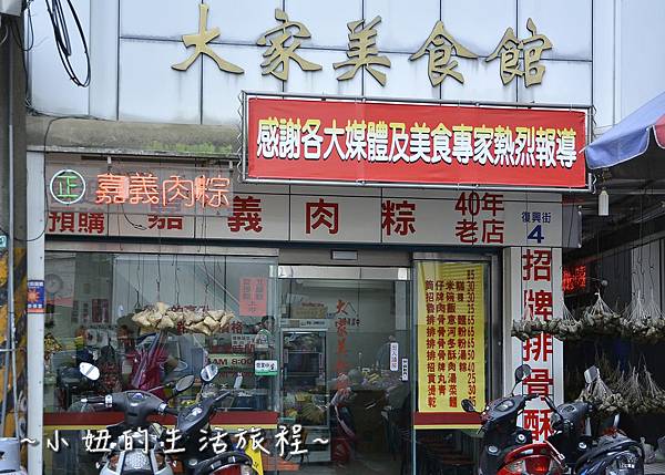 從這個小巷子轉進來就看到「大家美食館」囉! 外面掛了好多粽子喔!!