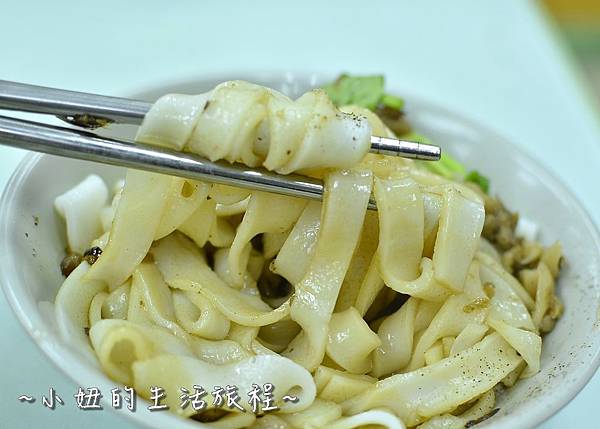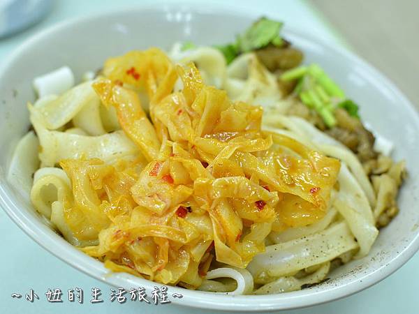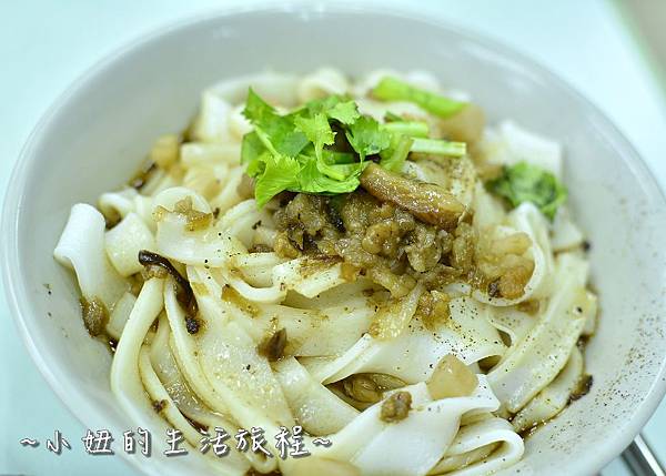 乾河粉,上面有滷汁肉末和些許胡椒粉