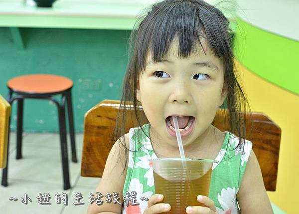 妞妞吃完碗粿後, 立馬拿了一杯冬瓜茶喝~