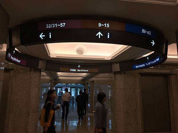 35樓和36樓之間和59樓和60樓這間有一個手扶梯,這兩處可以轉換單樓層和雙樓層,因為101的電梯還蠻複雜的,要搭到中高樓層,就必須到35樓/36樓或59/60樓換電梯。