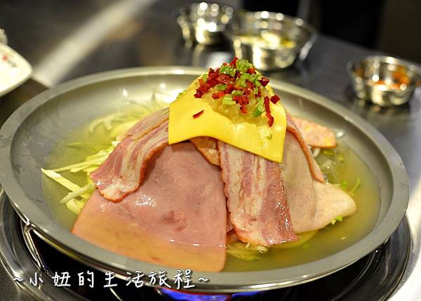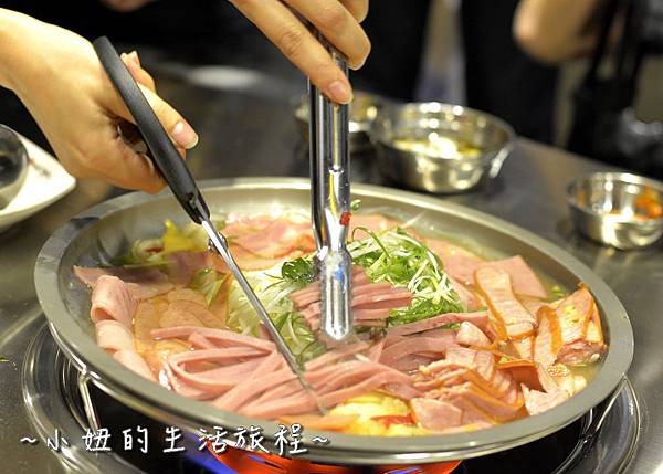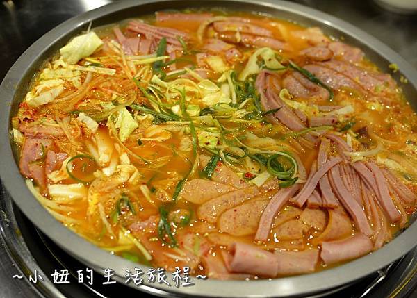 部隊鍋是韓國常見的市民美食,這裡比較不一樣的是使用四種的火腿,吃起來味道微辣、口感溫潤