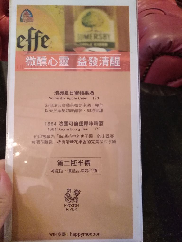 主推的啤酒都是餐酒館常見的品牌,很受到大眾歡迎,還有第二瓶半價的優惠,夏天飲酒不可錯過!