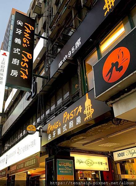 尖牙義式廚房位於車水馬龍、辦公室林立的南京東路五段,離遠近馳名的佳德鳳梨酥只有咫尺之遙。黑底白、黃字體的招牌非常醒目,遠遠的就能看見。交通也十分方便,搭乘台北捷運松山新店線,從南京三民站2號出口出站,然後順著南京東路五路往光復北路方向走,幾分鐘就可以抵達「尖牙義式廚房Fang's Pasta 」台北南京店。