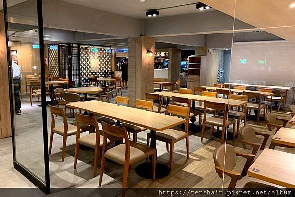 還有這種一邊沙發,一邊木椅的雙人座。注意看一下這邊的沙發座底下,還有插座可供充電。