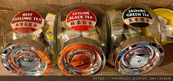 茶包有凍頂烏龍茶、錫蘭紅茶、茉香綠茶。