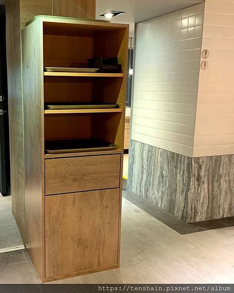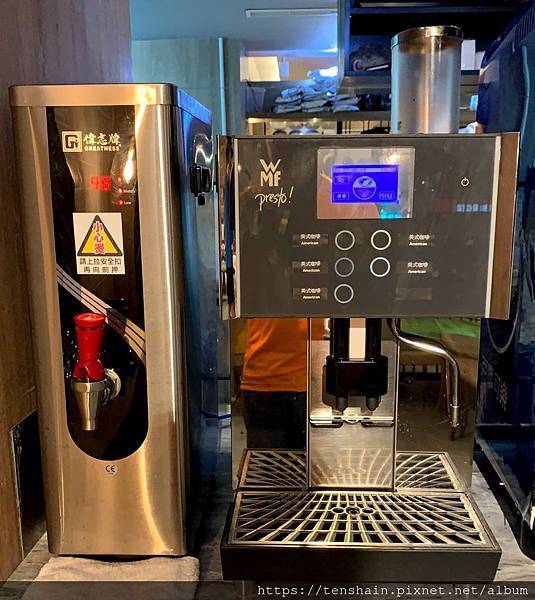 咖啡機也有,上班族的精神補給,不管是下午還要繼續努力,或者吃完晚餐,還要挑燈加班,喝了再上。左邊的開飲機提供熱水,讓你自己沖一杯芳香撲鼻的好茶。