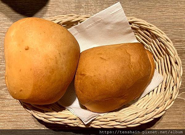 小麵包沒有內餡,單純的麵包香,可以撕下來,沾著玉米濃湯一起吃。