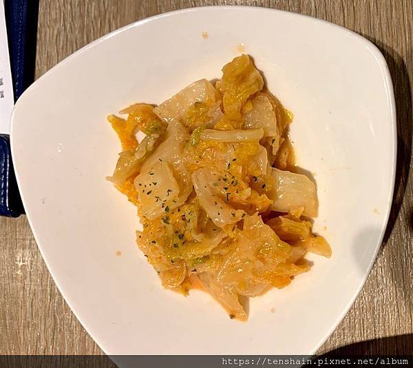 這碟黃金泡菜得到我和老婆一致的讚賞,冰涼的口感,一入口,有一股溫和的嗆辣刺激感,帶著酸酸甜甜的滋味,吃起來非常清爽。