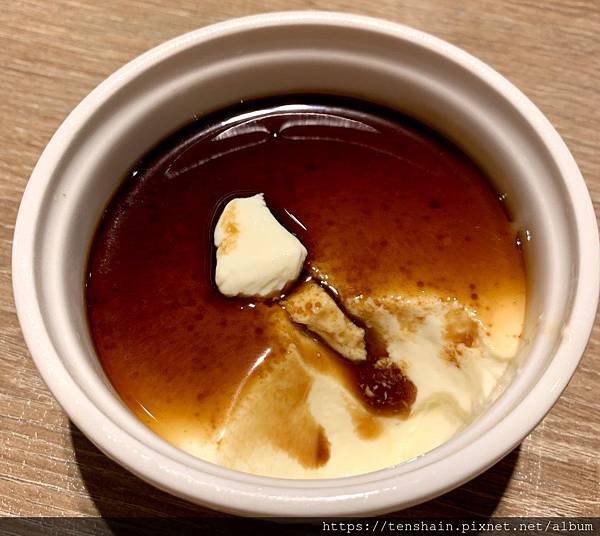 套餐的甜點有兩種選擇,我和老婆各選一種。這是義式手工奶酪,上面的糖汁帶有輕微的焦香,相當的甜,奶香很濃,整個奶酪的口感非常像我在台南吃到的古早味焦糖布丁,太好吃了!