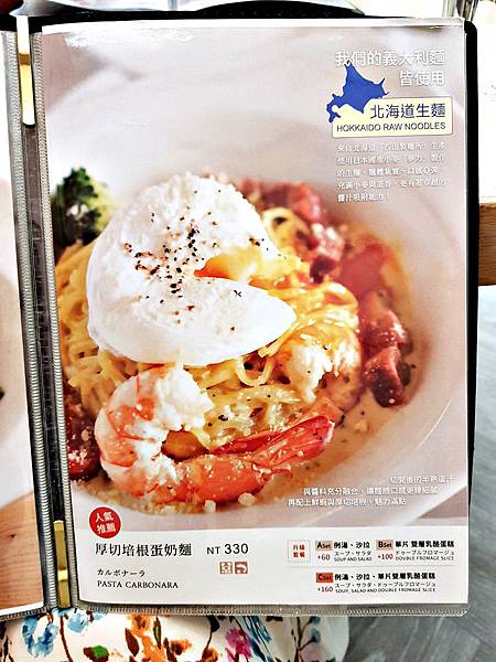 除了招牌的甜點, 有採用北海道生麵做的義大利麵, 看起來也好優質