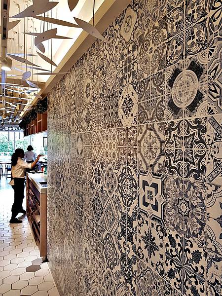 有一面牆充滿古典藍色花紋圖案, 很美呀!