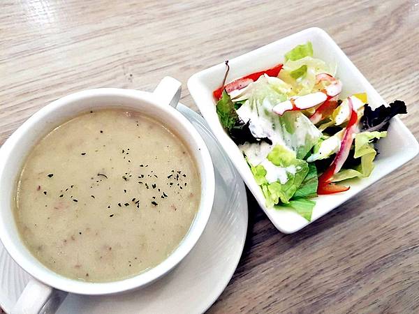 這是點主餐加價$60 元就會有一份濃湯+一份生菜沙拉