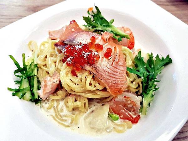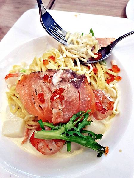鮭魚的egg 吃下去在口中直接化開, 帶點海味和鹹味, 剛好讓拌有奶油白醬的義麵增添鮮度