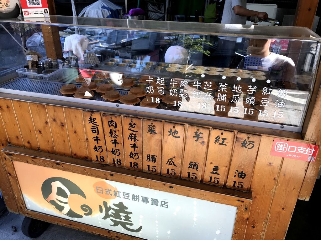 車輪餅一直是筆者非常喜歡的小點心,而位於天母sogo對面的月之燒紅豆餅在筆者心目中具有非常高的評價。口味的部份除了常見的紅豆、奶油之外,單一口味的還有芋頭、地瓜、菜脯。都是單一價15元。而雙料口味的一個要18元,分別有起司牛奶、肉鬆牛奶、以及芝麻牛奶。
