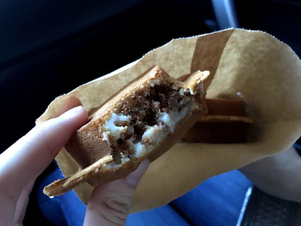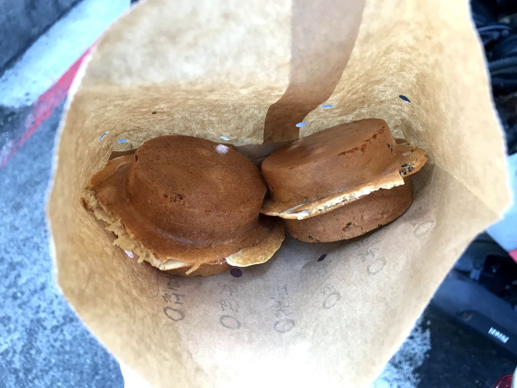 剛拿到剛出爐的車輪餅,餅皮非常的酥脆,就算稍微涼了也保有一定的穌脆度喔!