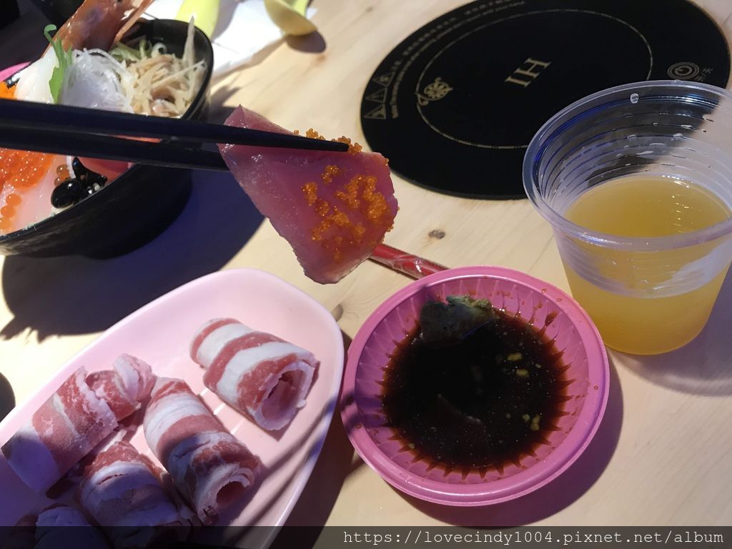 加上鮭魚卵與鮭魚生魚片,對於鮭魚控的忻希亞來說,看起來十分誘人。