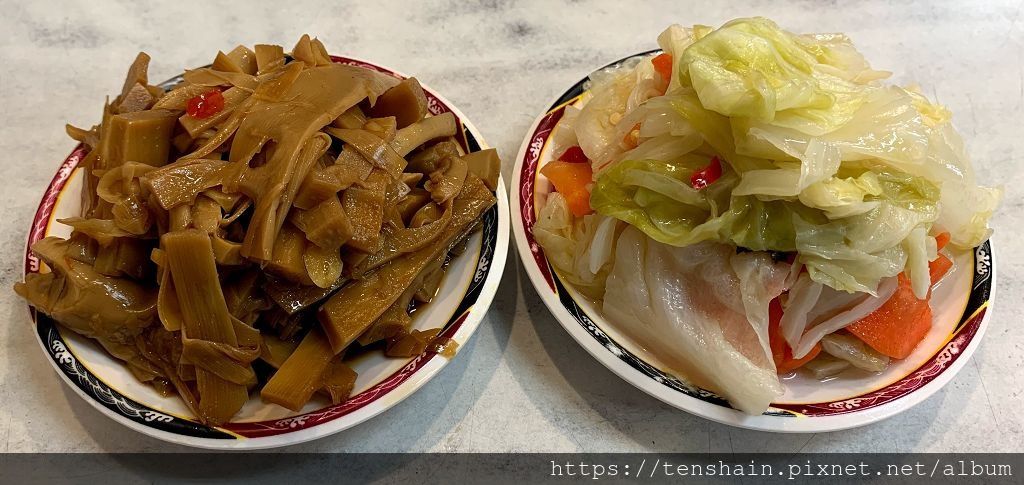 通常我們來老虎醬溫州大餛飩復興店吃麵,都會多拿幾樣小菜,因為他們的小菜不但便宜,而且非常好吃!就連我那兩個從小就被養刁嘴的女兒都讚不絕口,可以想見這些小菜的味道有多美味!今天因為在SOGO已經有吃了一些小東西,所以我們只拿了兩盤小菜,滷筍絲和泡菜。老虎醬溫州大餛飩復興店的滷筍絲是我的最愛,滷得非常透,內外的味道都一樣,鹹香軟嫩,完全沒有硬柴的纖維,卻又保有咀嚼的口感。不誇張的說,我覺得這是我吃過滷筍絲中的第一名!
