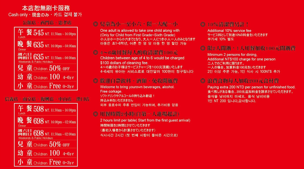 (加一成服務費,只收現金,晚餐最後入場時間2:00)