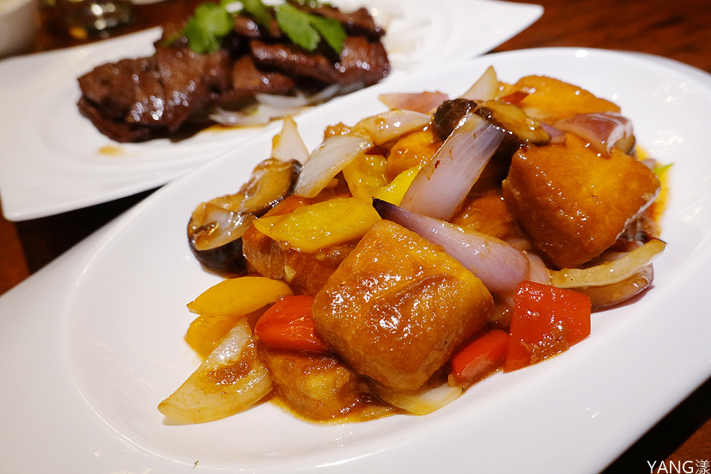 紅燒蛋豆腐和煎豬肝有點異曲同工之妙,豆腐先經過油炸使表面炸出一層模,但內部仍是蛋豆腐的嫩度,吃起來也是雙層口感的搭配,而且味道很下飯。