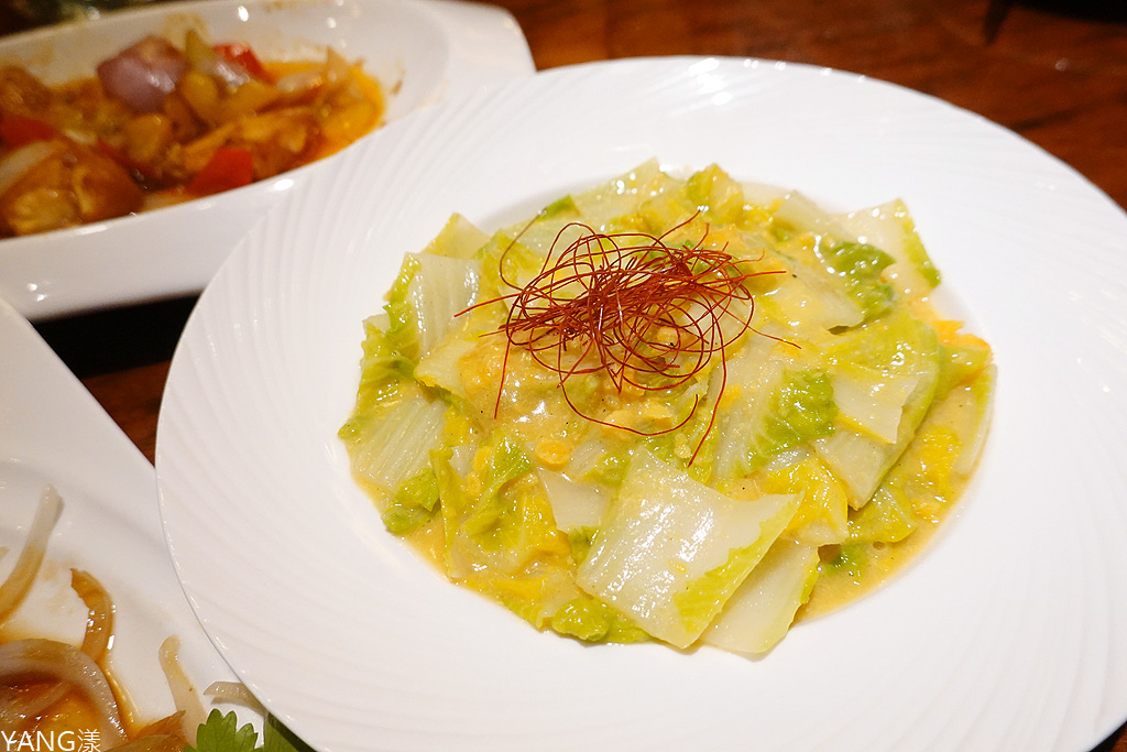 這道金沙娃娃菜也是狠角色,金沙(鹹蛋黃)像是不用錢似的布滿在娃娃菜上,每一片娃娃菜都可以吃到濃郁鹹蛋黃,搭配娃娃菜的爽脆口感,讓青菜變成如此美味,這道也一致獲得好評。