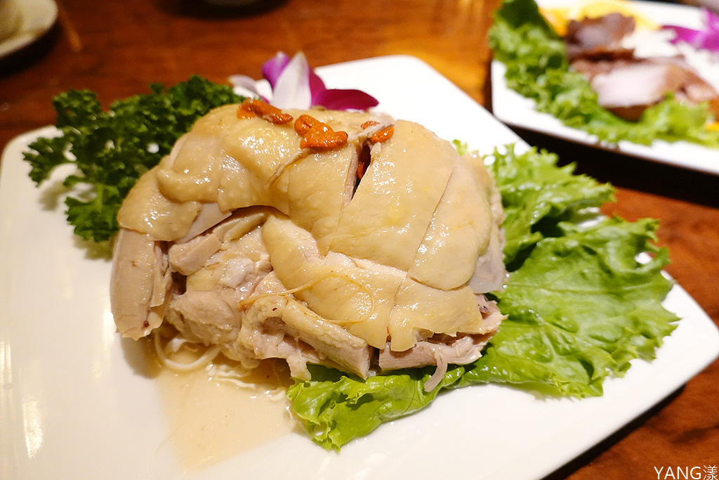 店內餐點可分為冷盤開胃菜、熱炒、湯品、飯麵、肉類、海鮮、青菜和下酒菜共八大類,雖然菜單上餐點就只有兩頁,但可以選擇的數量還不少,有些菜色的名稱也很有趣,像是比你還醉的醉雞、客家人不會買單的小炒、台北前三名的煎豬肝、好了啦太大塊封肉、比巷口好吃的滷味拼盤。餐點除了飯麵類裡的私房牛肉麵和黯然消魂油雞飯是比較偏個人用餐外(也可以點來大家分食),其餘都是合菜。