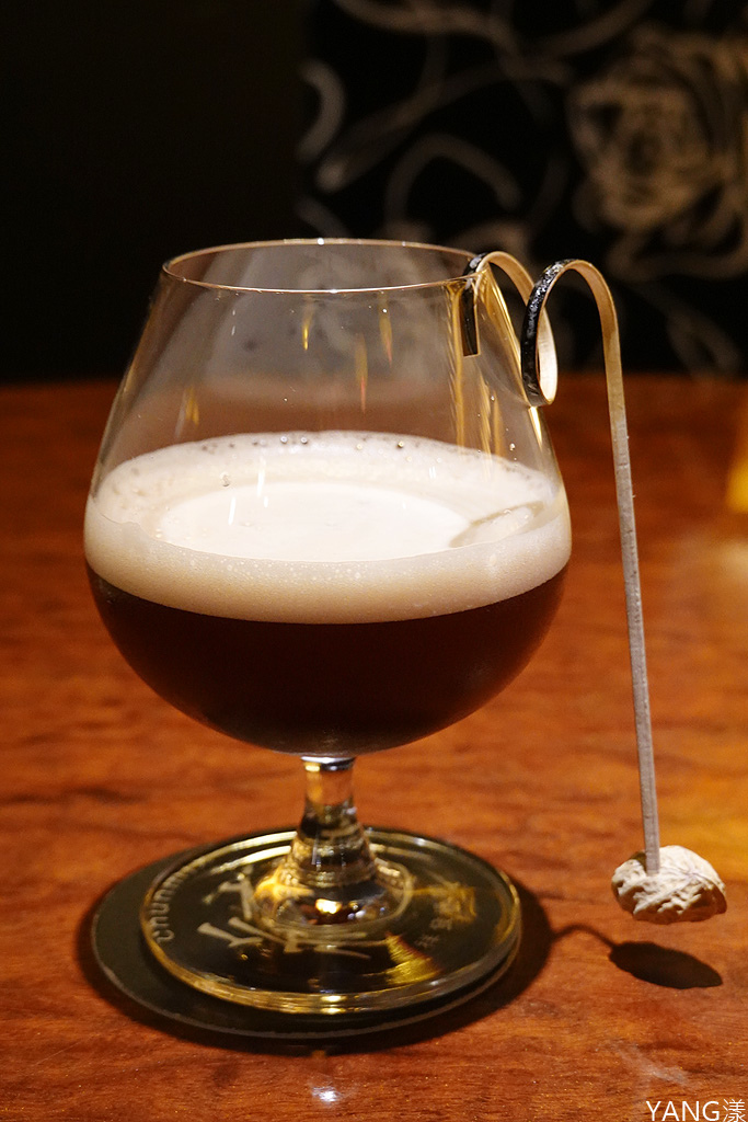 我們點了一杯調酒來試試,這款鐵娘子甜甜是將鐵觀音、伏特加、巨峰葡萄利口酒、黑巧克力利口酒調製而成,酒精濃度還好,喝起來帶有茶香,隱約中透出一點黑巧克力的味道。【飲酒過量有害健康,開車不喝酒,喝酒不開車】