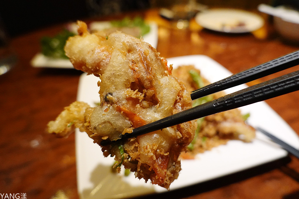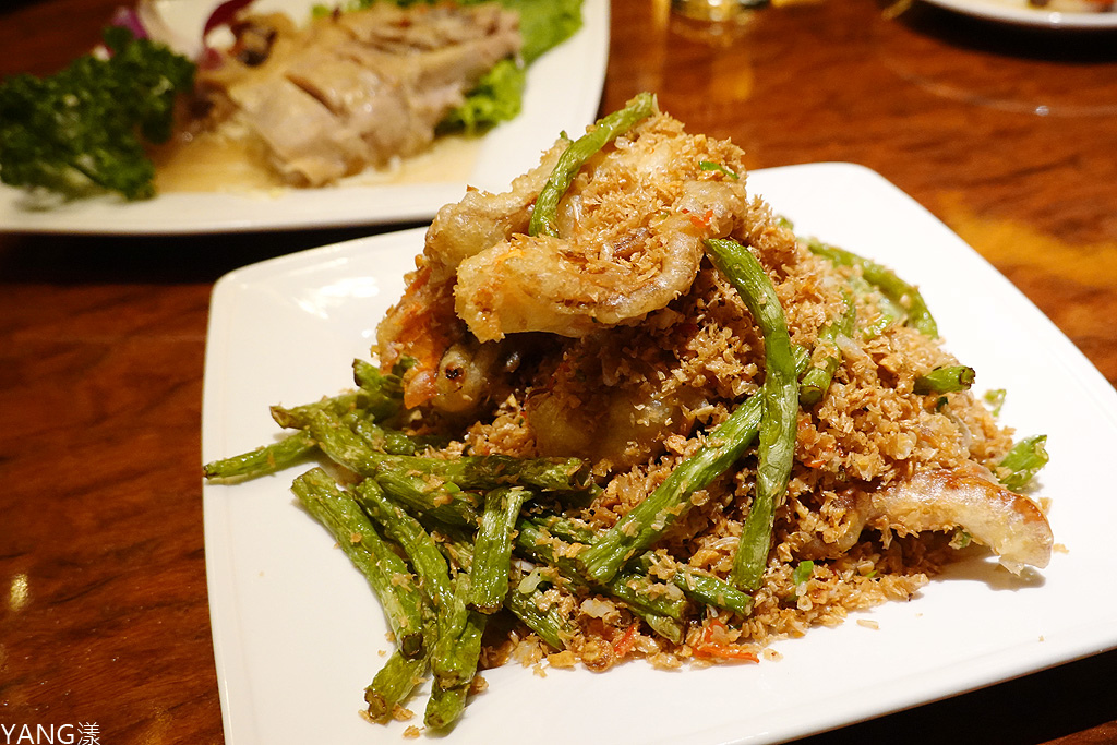 炸得酥酥的軟殼蟹搭配蒜酥和四季豆,是一道下酒好菜,可惜份量太少,切起來只有四塊。