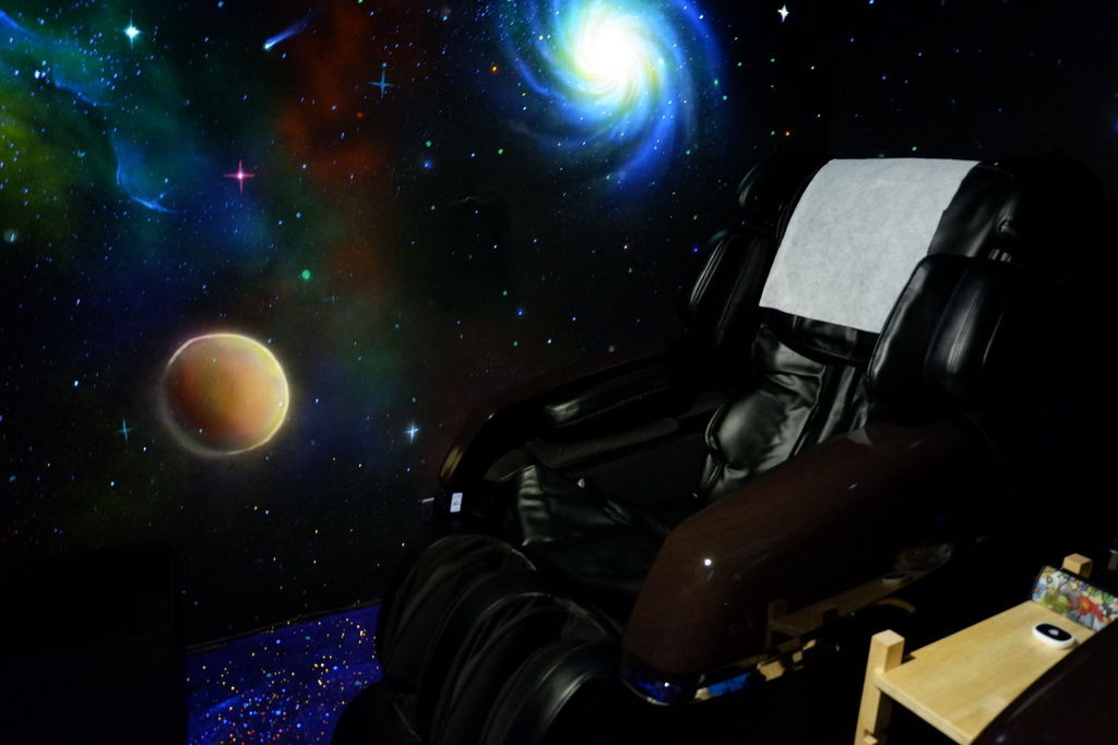 特殊主題式空間讓您彷彿徜徉在浩瀚無垠的宇宙之中,並同時體驗著平價的按摩消費。