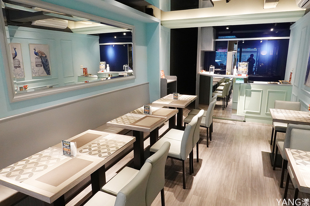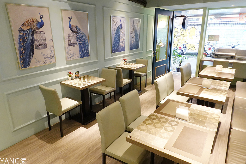 店內的裝潢很素雅,一邊的牆面裝設大鏡子,可以讓店裡看起來有較大的空間感,另一面則是以印度國鳥孔雀作為裝飾。店裡使用可移動的桌椅,可機動組合出各種人數變化,就算是多人聚餐,只要事先訂位就沒問題。