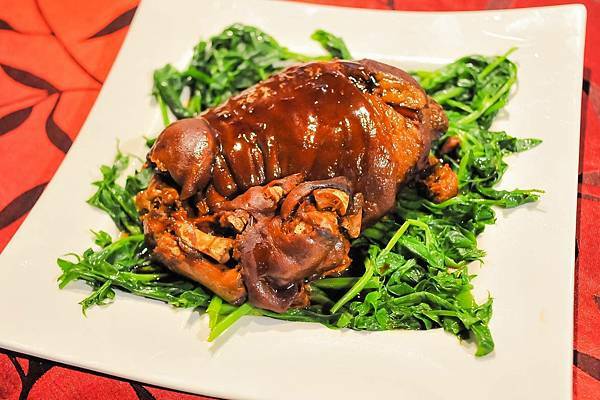 同學們!筷子拿好了沒啊?主菜準備登場啦~鼓掌歡迎~醬肘子!多麼豪邁又精緻的一道菜色啊~滷得油亮噴香的肘子,還有那軟Q的豬皮……嘖嘖嘖,今夜,誰都別跟我說減肥啊!(握拳
