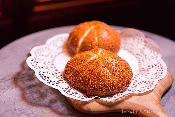 最後一道菜是超特別的上海麻餅,原本我聽名字還以為是類似煎餅之類的,結果一上菜大家驚呼連連!好美好香!猛一看還以為是烤麵包呢~