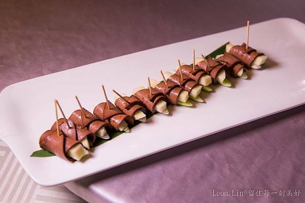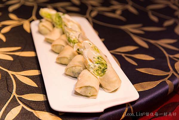 接下來的也是冷盤,宮廷梨子捲,多汁的水梨加上小黃瓜絲與生菜絲,抹上些許的美乃滋後用潤餅皮捲起來,也是極為爽口的一道開胃小菜。