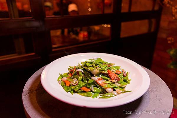 這道菜有個很美的名字,荷塘小炒。四季豆再加上廣式香腸還有百合跟紅蘿蔔,不只賣相極佳~連口味都很棒。