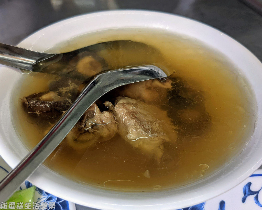 ▲香菇雞湯 60元 - 湯內有三塊帶骨雞肉,湯品口味偏淡。