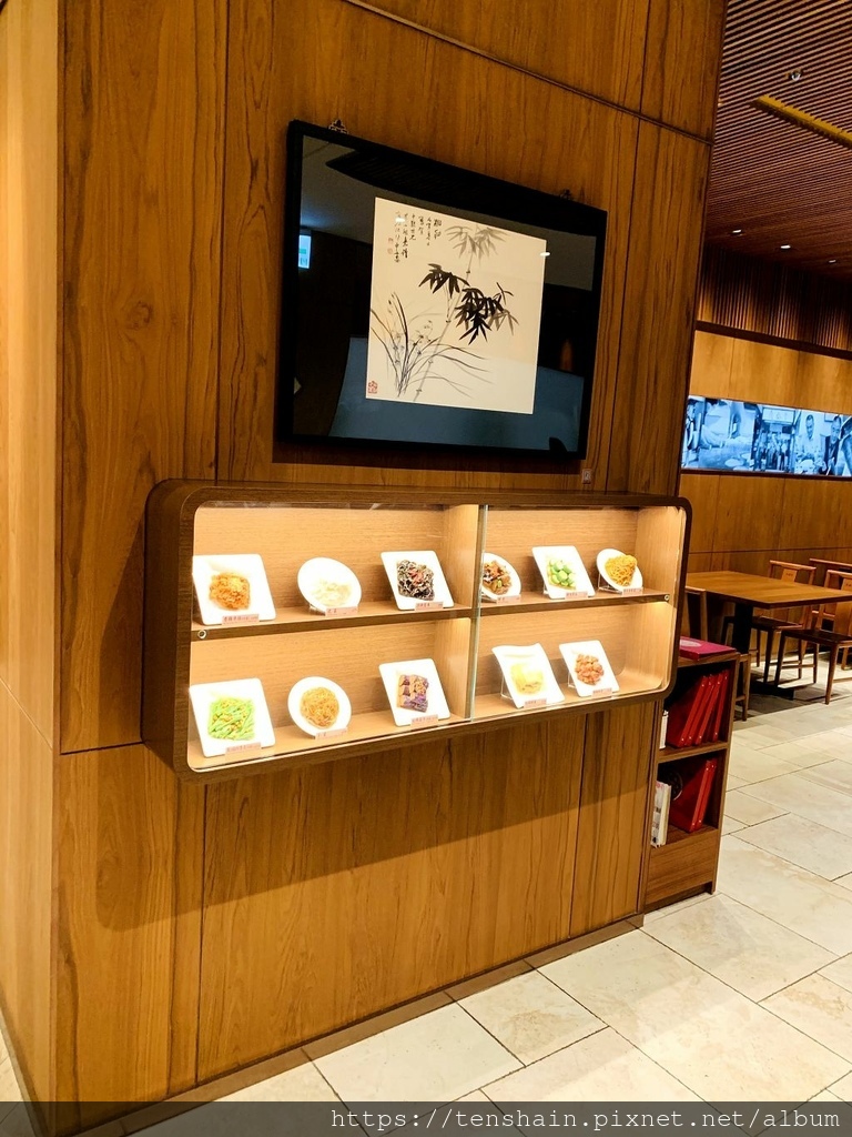 走道旁有個小菜展示櫃,厲害的是每道小菜的擺盤都有講究,一點都不馬虎。