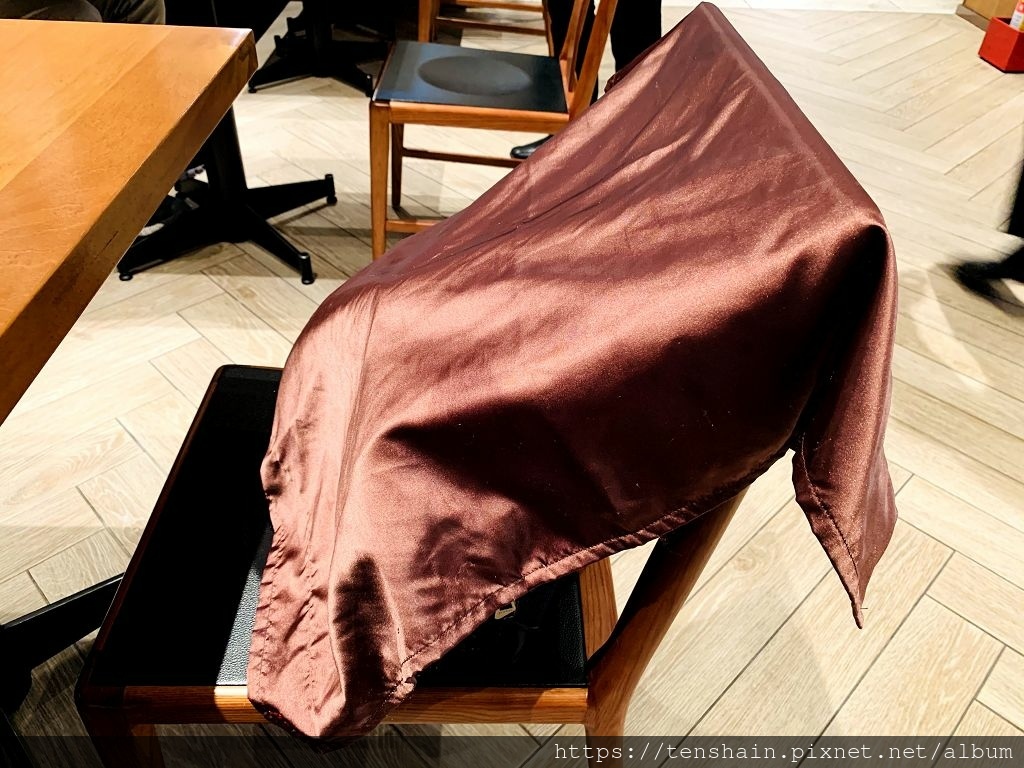 因為我們只有三人用餐,當我在空的椅子上放上隨身背包,服務小姐第一時間就趕過來覆上遮布,效率與專注力之高,令人感動。