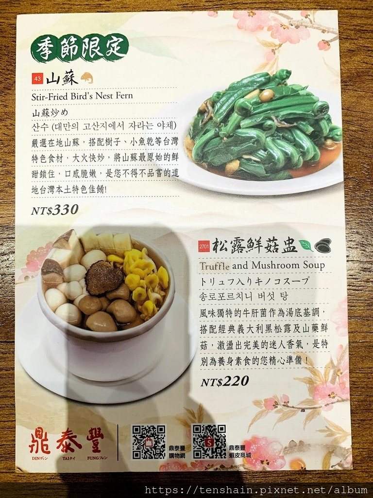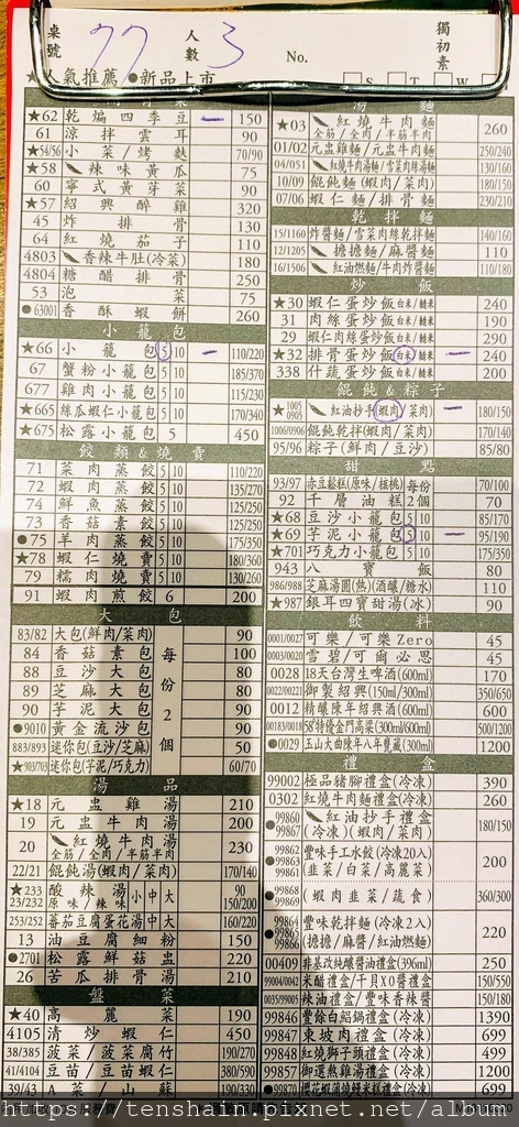 點菜單分成 12 類,料理總數近 90 道,真的是密密麻麻,第一次來鼎泰豐用餐的朋友應該會有不知如何下手的感覺。