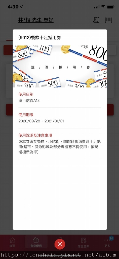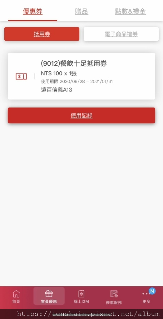 要注意的是電子抵用券有使用期限,而且有註明使用店別,意思是不能跨店使用。