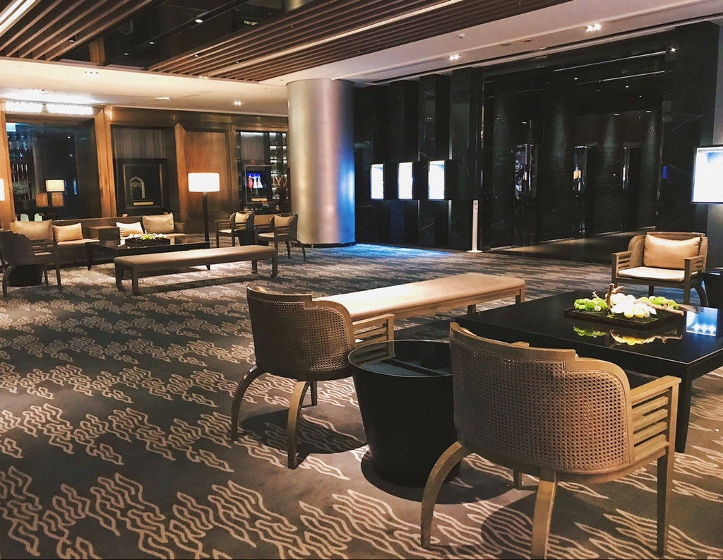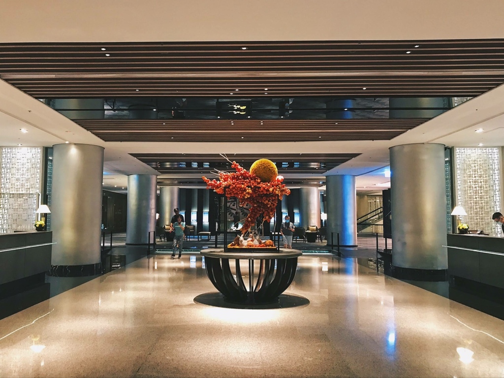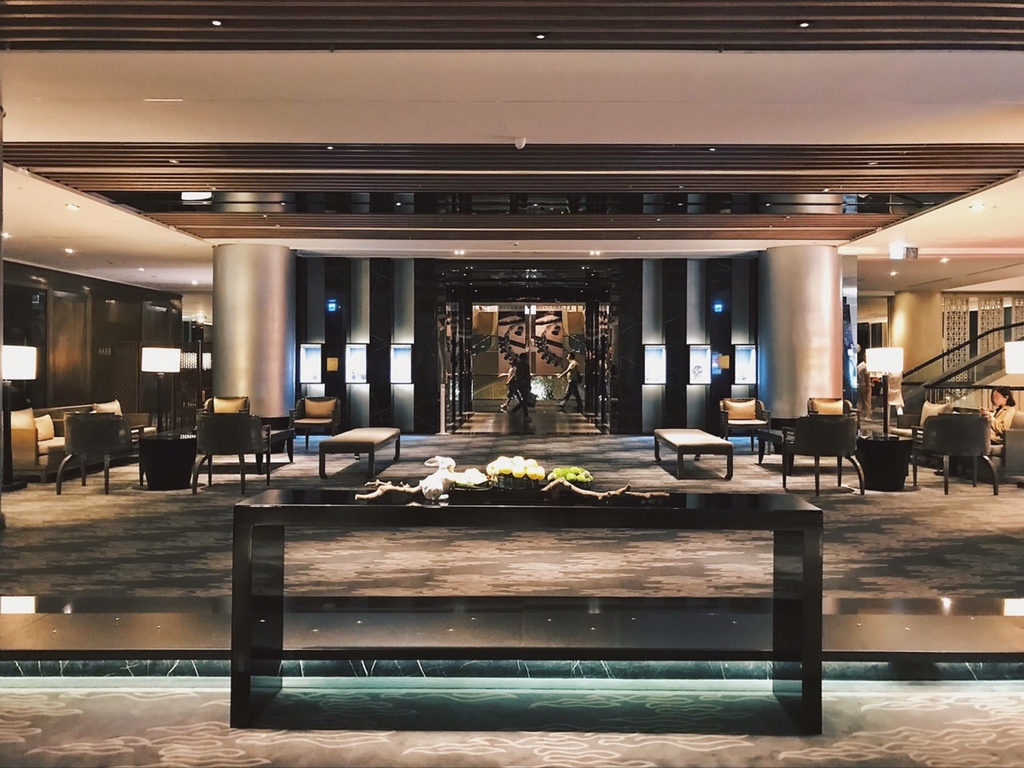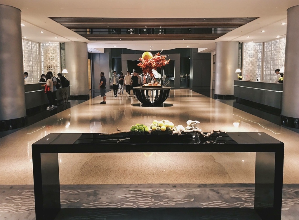 從氣派寬敞的飯店大廳,就能感受到滿滿低調奢華氣息,辦理入住手續的櫃台位於右手邊。