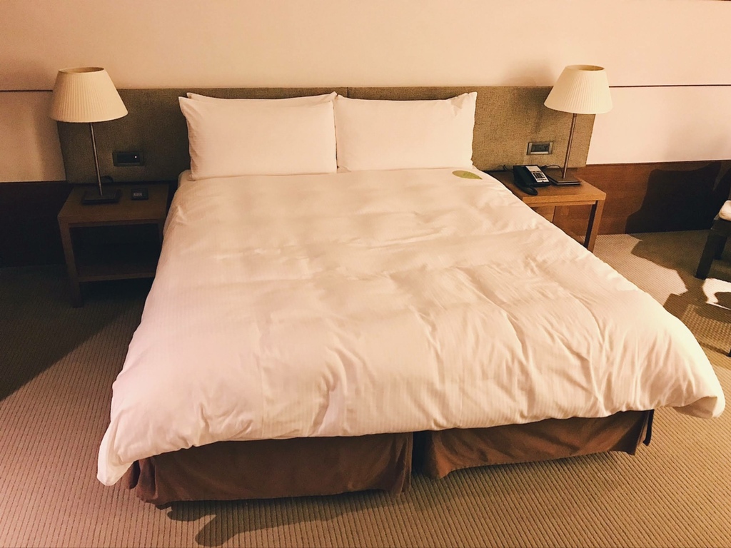 豪華客房的雙人床是一張特大床,跳上去大到可以滾好幾圈,是使用Wellspring臥舒麗床墊,非常舒適,