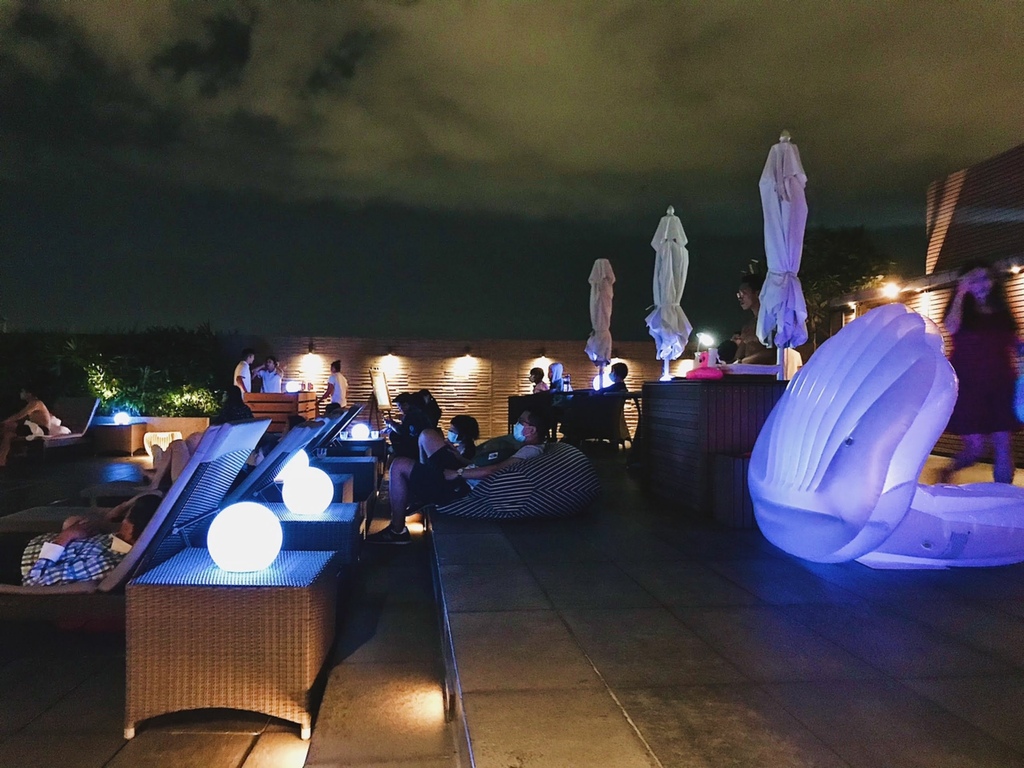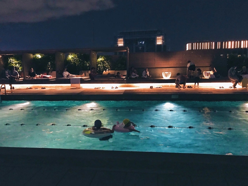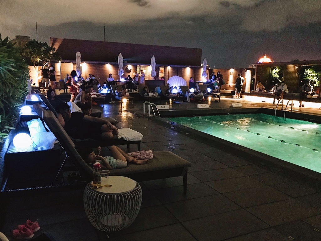 夜晚點上燈後整個泳池畔變得超有氣氛,不管是坐在躺椅上、懶骨頭或是池畔的木質發呆亭都很舒服,超推薦情侶一起來,感情肯定火速升溫哈。