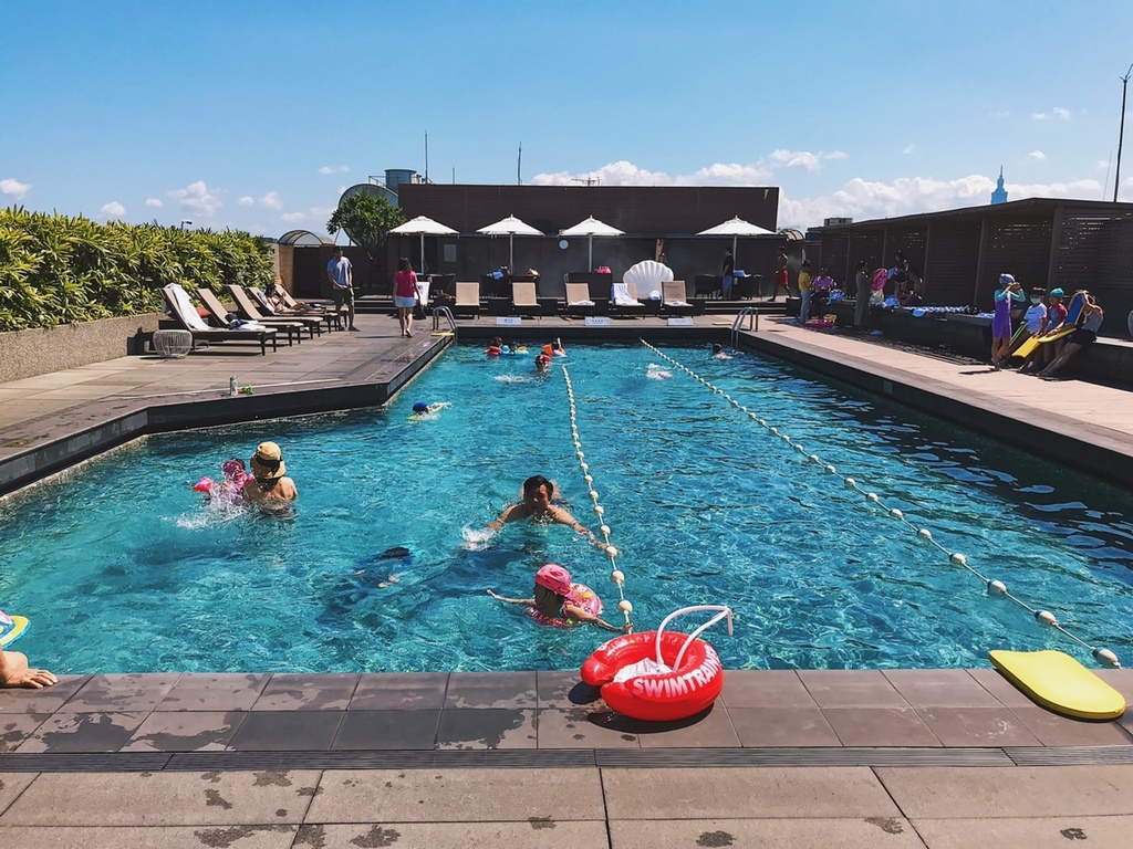 溫水游泳池即使在秋冬也能安心游泳運動,不只能看到美麗的台北市夜景,還能在鬧區中心頂樓看電影,實在很愜意。